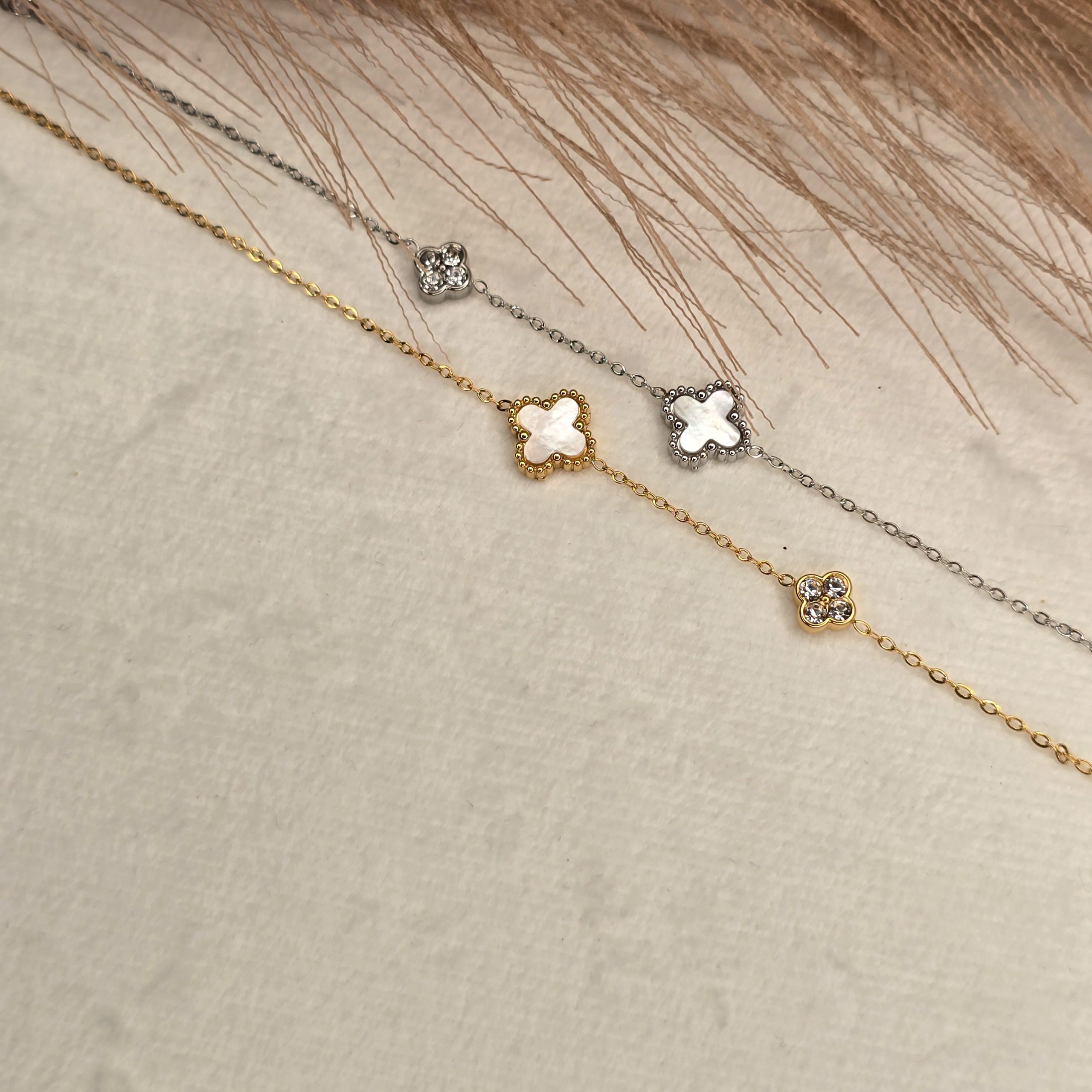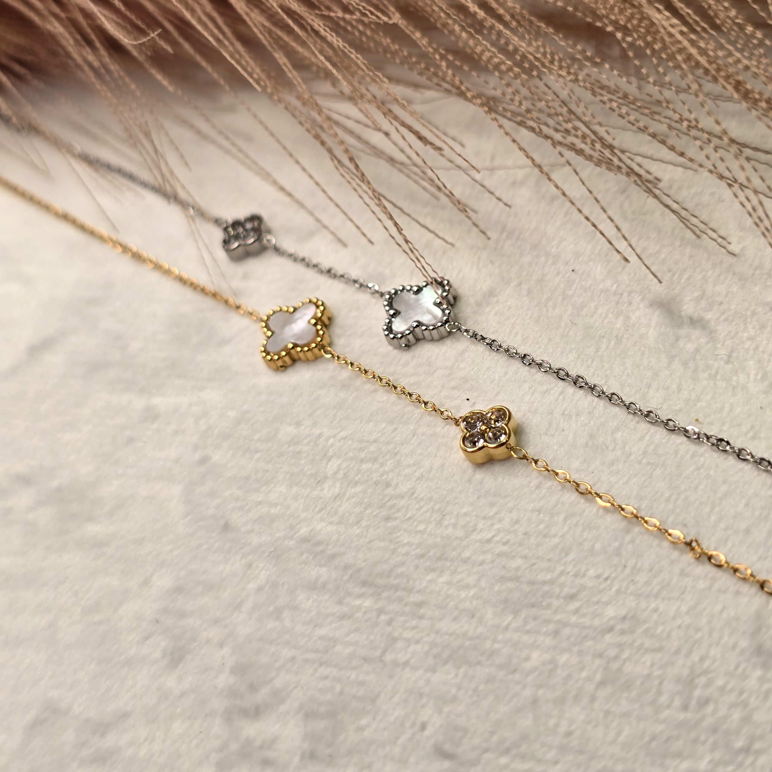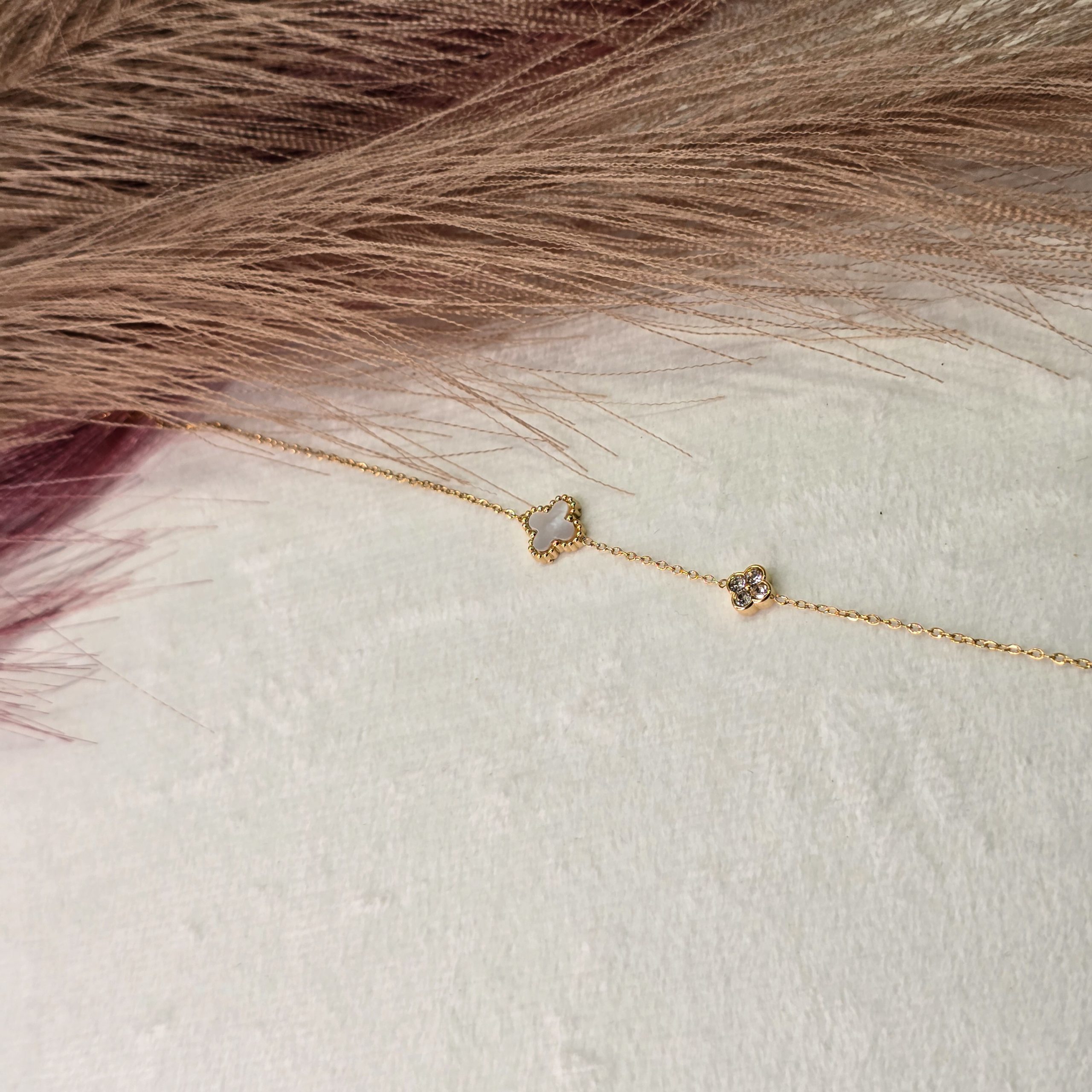 Λεπτό και διακριτικά λαμπερό, το BloomBracelet προσθέτει μια κομψή πινελιά σε κάθε εμφάνιση. Τα μικρά floral στοιχεία δημιουργούν ένα φίνο αποτέλεσμα που συμβολίζει αρμονία και θετική ενέργεια, ενώ η minimal αλυσίδα το κάνει ιδανικό για καθημερινή χρήση.
